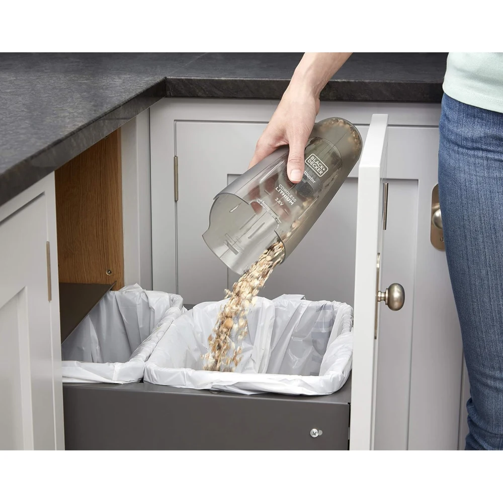 BLACK + DECKER DUSTBUSTER 3.6 V LITHIUM 5.4 WH HANDHELD VACUUM NVC115WA-B5 3.6V Lithium-Ion Battery: The vacuum is powered by a lithium-ion battery with a capacity of 5.4 Wh, providing reliable suction for everyday cleaning tasks. Lightweight Design: Its small size and lightweight construction make it easy to handle and ideal for quick clean-ups in tight spaces. Cordless Operation: The cordless design allows for flexible movement and ease of use without being restricted by power outlets. Easy Empty Dustbin: Features a translucent, easy-to-empty dustbin, allowing you to see when it’s full and simplifying the disposal process. Built-in Charging Base: Often comes with a charging base for convenient storage and charging, ensuring the vacuum is always ready for use. Versatile Cleaning: Suitable for various surfaces, including countertops, carpets, and upholstery, making it a handy tool for multiple cleaning tasks. Quick and Efficient Clean-Ups: Perfect for tackling small messes, crumbs, pet hair