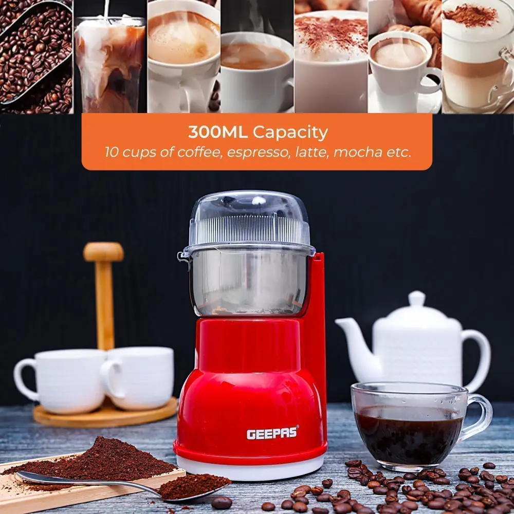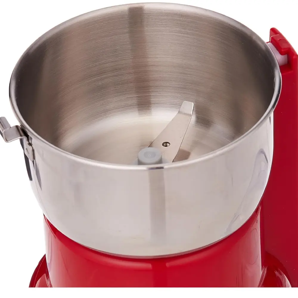 GEEPAS COFFEE GRINDER GCG5440 PERFECT POWER, OVERHEAT PROTECTION - 180 Watt –the best option, given the quality of the coffee received and the amount of time spent. Able to grind coffee bean to a fine enough power. THE ABILITY TO REGULATE GRINDING - The degree of grinding depends on the operating time of the coffee burr grinder: the longer it works, the smaller the milling. For coarse grind, it will take about 10 secs. You should spend 13 seconds getting it. Fine grind - only for a geyser coffee maker. The grinding time is 15-20 seconds. This kind of spice grinder’s electric help you get any size of milling. REMOVABLE STEEL BOWL, EASY CLEANING - To prevent damage & clogging the spice blender, you should rinse the device after each use.