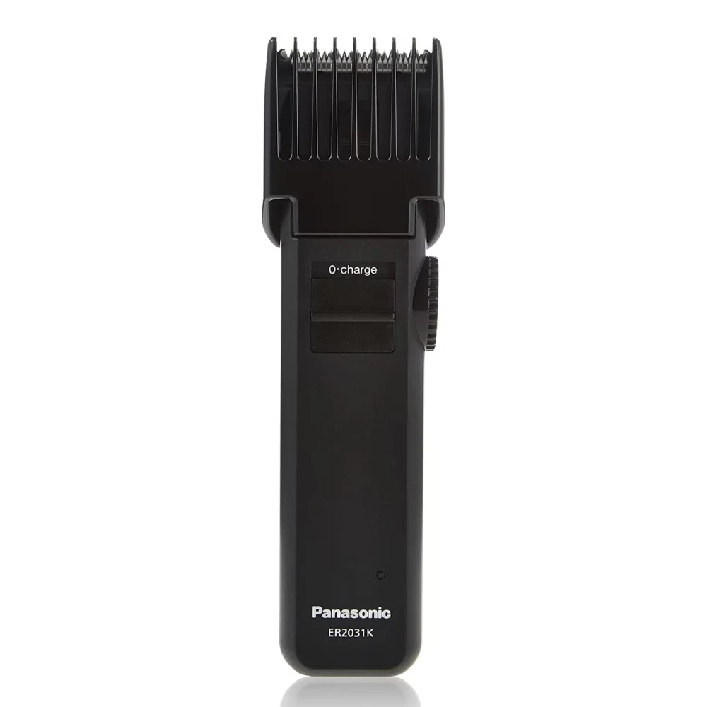 PANASONIC TRIMMER ER2031K Trim & style your beard and hair with high performance stainless steel blade and 12 cutting length adjustments, Power battery rechargeable 8 hours, providing up to 40 minutes of cordless usage, Comes with thinning attachment for hair and special comb for beard trimming, Quick adjust dial for easy length setting Turn dial to easily adjust comb up and down into 12 settings from 2-18 mm. No need for multiple comb attachments, Easy and safe blade replacement.