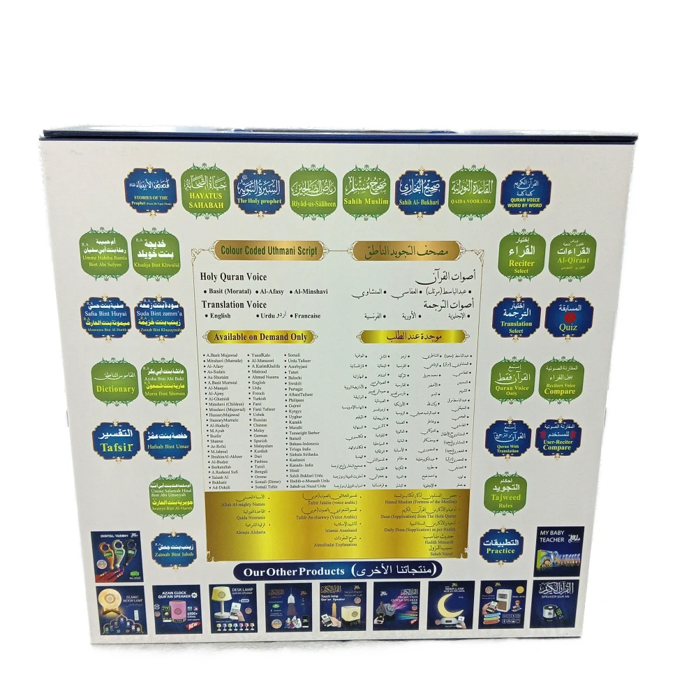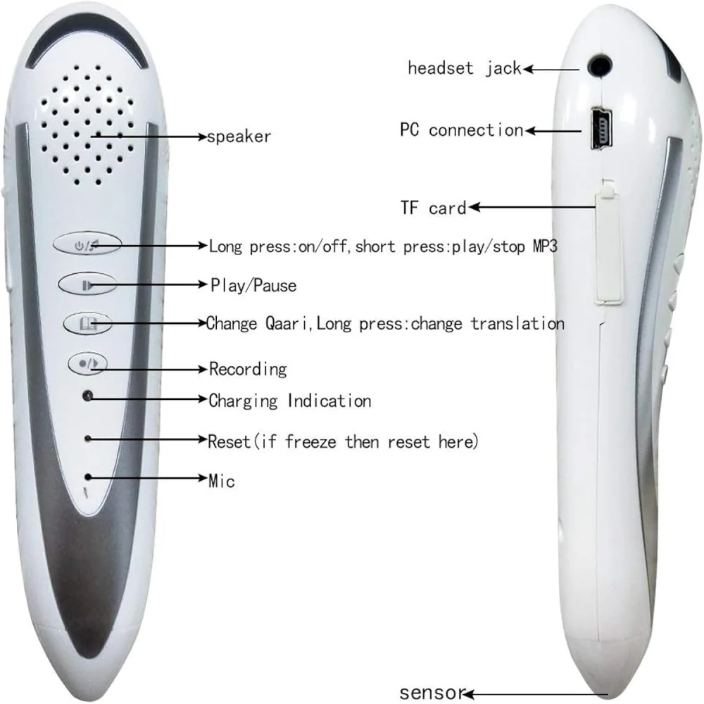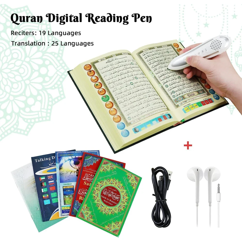 DARUL-QALAM QUR'AN READING PEN 16 BOOKS QURAN VOICE WORD BY WORD BLUETOOTH SPEAKER 32 GB MEMORY 16 Books Preloaded: Comes with 16 different Quranic books, providing a variety of readings and translations. Quran Voice Word by Word: The pen reads the Quran aloud word by word, making it easier to follow along and learn pronunciation. Bluetooth Speaker: Equipped with a Bluetooth speaker, allowing you to connect the pen to external audio devices for clearer sound or to play Quranic recitations on other speakers. 32GB Memory: 32GB of memory ensures that the device can store a large number of Quranic resources and audio files. Portable Learning: The pen is compact and portable, making it easy to carry for studying or listening to Quranic recitations on the go. Ease of Use: Simply touch the pen to the desired text in the Quran or a book to hear the recitation of that verse. Learning the Quran: Great for beginners, students, or anyone looking to improve their Quranic recitation and understanding