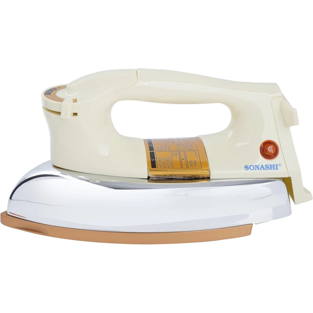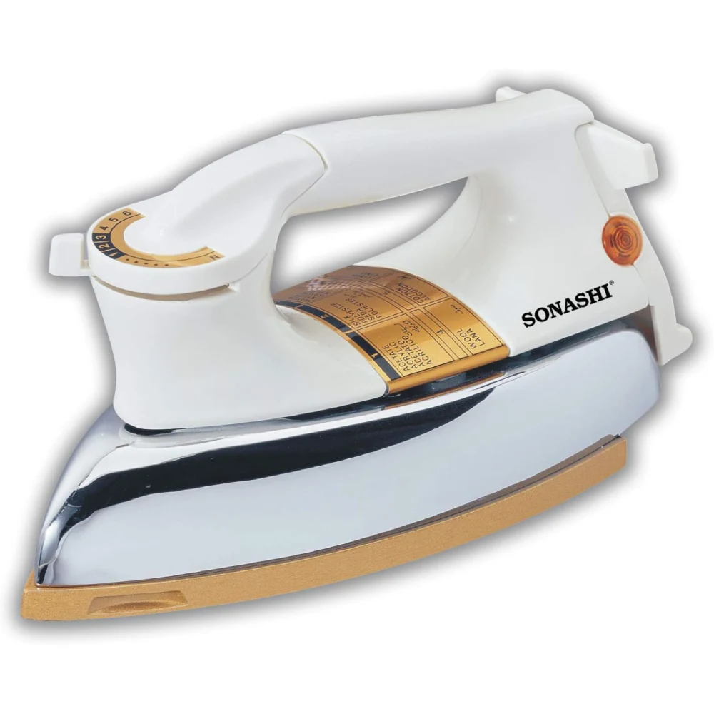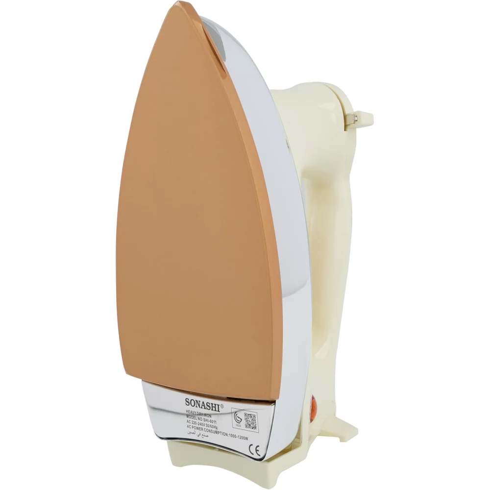SONASHI SHI-6011 HEAVY DRY IRON 1200 W 1200 Watts Power: Provides adequate heat for effective wrinkle removal on various fabrics. Automatic Cut Off: Enhances safety by automatically shutting off the iron if it’s left unattended for a certain period, reducing the risk of overheating. Easy Temperature Settings: Simple controls allow you to adjust the temperature easily based on the fabric type, ensuring safe and effective ironing. Ceramic Sole Plate: Offers smooth gliding over fabrics, enhancing durability and minimizing the risk of sticking or snagging. Overheat Safety Protection: Provides an extra layer of safety by preventing the iron from overheating. Button Groove: Designed with a specialized groove to easily navigate around buttons and other obstacles while ironing. AC 220-240 V, 50/60 Hz: Suitable for standard voltage in many regions, ensuring compatibility with most electrical systems. Efficient Ironing: The combination of power and a ceramic soleplate allows for quick and effective wrinkle